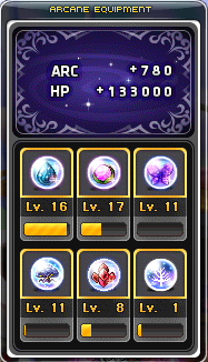 이렇게 아케인 포스 780을 달성했고, 6칸을 모두 다 채웠습니다.