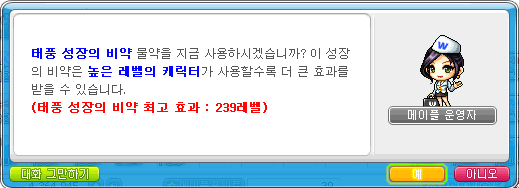 태풍 성장의 비약을 먹고 235레벨을 달성했습니다.