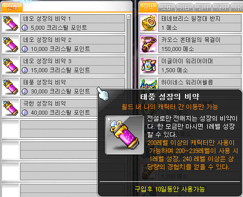 현재 NEO 이벤트로 성장의 비약을 파는데, 저는 태풍 성장의 비약을 구매했습니다.