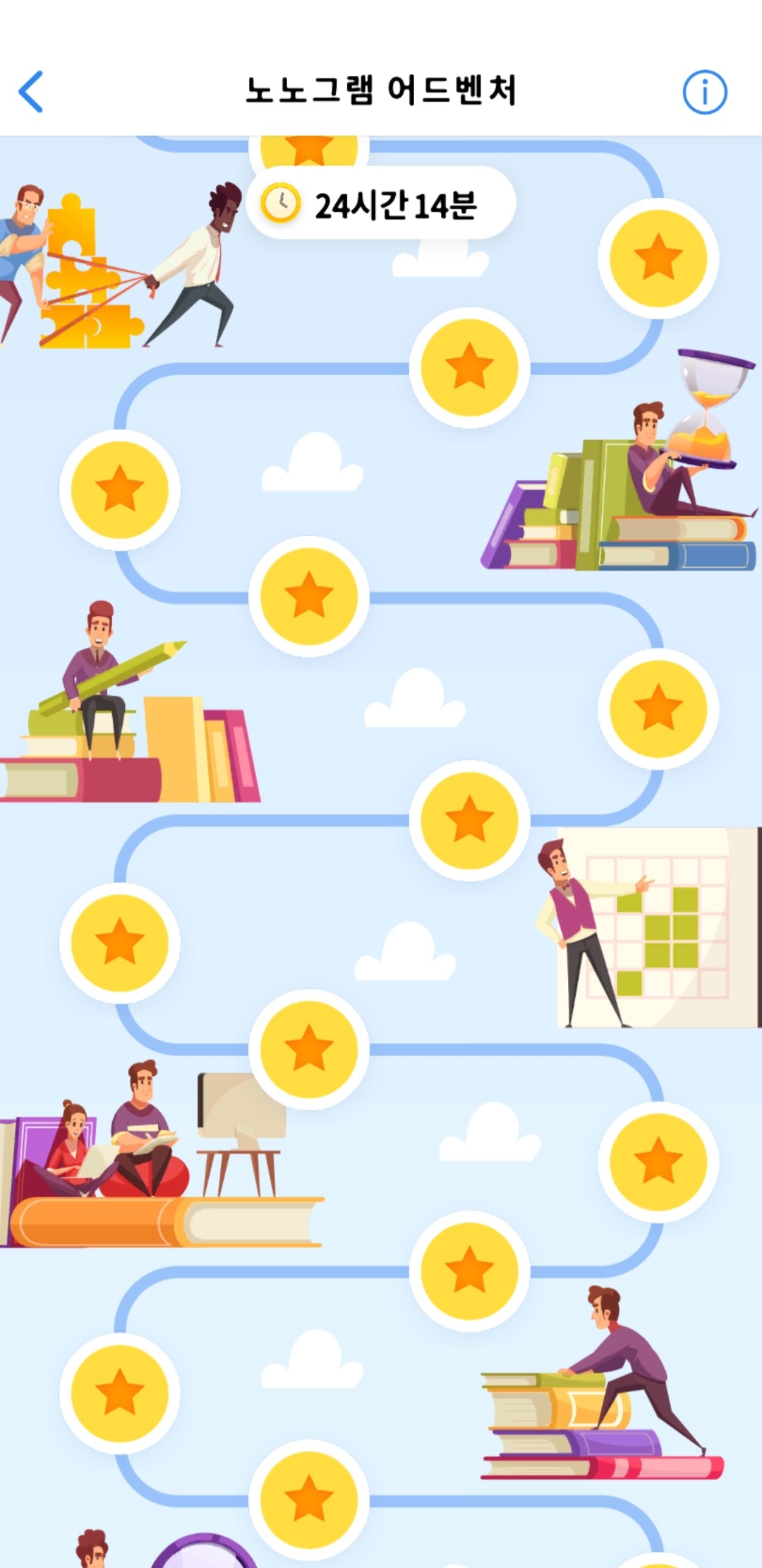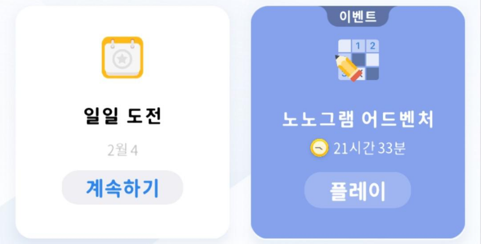 메인 화면에 '일일 도전'과 '노노그램 어드벤처' 같은 이벤트도 있습니다.