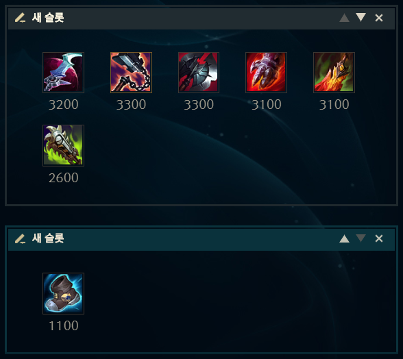 스킬이 좋지만 딜량 자체가 엄청나게 높은 편이 아니라 시간이 지나 풀템전으로 가게 되면 판테온쪽이 불리해집니다.