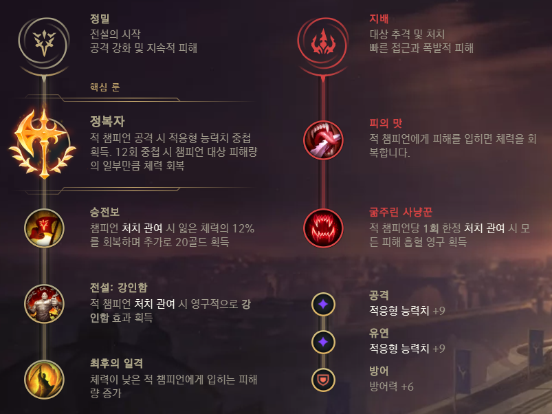 패시브 W를 활용해 정복자가 아닌 집중 공격 룬도 괜찮은 편입니다.