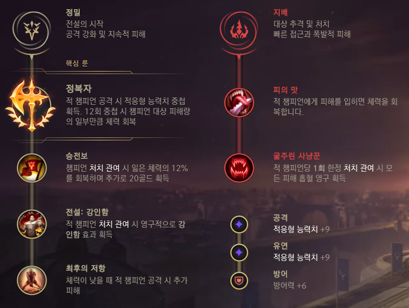 지속적인 전투가 중요한 일라오이에게 정복자가 가장 어울리는 룬이라 할 수 있습니다.