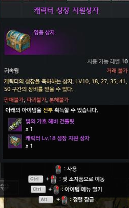 그리고 인벤토리를 열어봤는데 '캐릭터 성장 지원상자'를 주길래