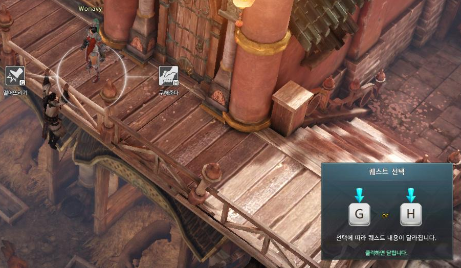 경쟁자인 NPC '호동'이 있는데 여기서 떨어드리냐 구해주냐에 다라서 퀘스트 내용이 조금 달라지나 보네요.