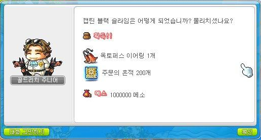 골드비치 퀘스트를 클리어하시면 귀고리와 100만 메소를 줍니다.