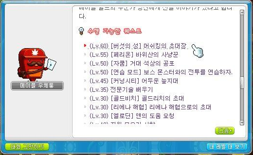 버섯의 성 퀘스트를 클리어하시면 300만 메소와