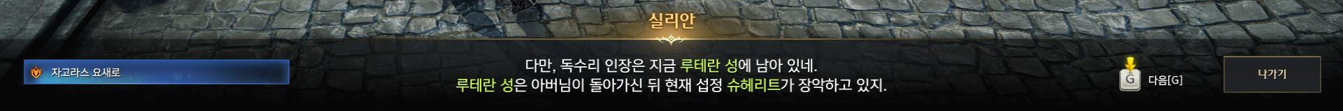 루테란 성을 탈환한다라... 퀘스트 내용이 꽤 길어질 것 같다는 생각이 먼저 들었습니다.