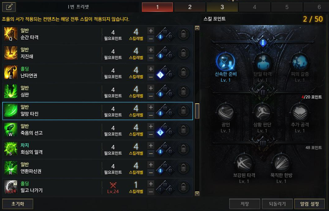 점점 배우는 스킬이 계속 쌓이는데 스킬 퀵슬롯은 8개 뿐이라 버려지는 스킬이 생기기 시작했습니다.