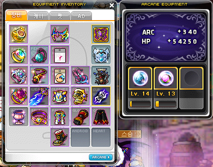 장착하니까 아케인포스 +30이 되었는데