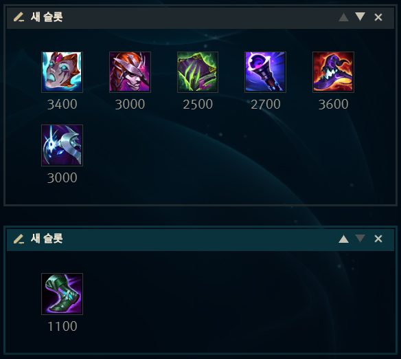 나머지 아이템은 전부 AP 관련 아이템으로 구매를 해줍니다. 악마의 포옹으로 지속딜을 더 올려주고,