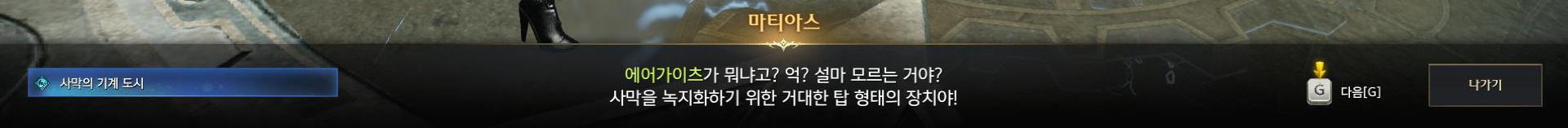 사막 도시 같은 느낌인데 예전 루테란 서부의 유디아보다 더 어두운 느낌이더라고요.
