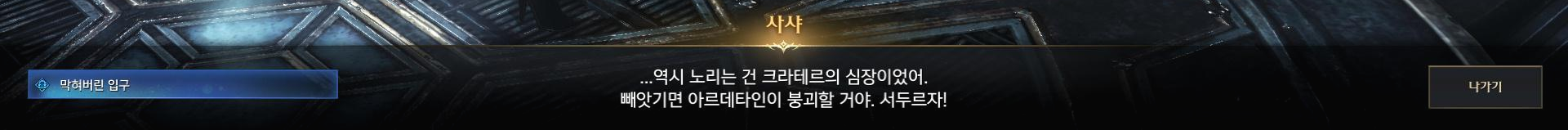 크라테르의 심장에 입장해서 무슨 일인지 확인을 해봅시다.