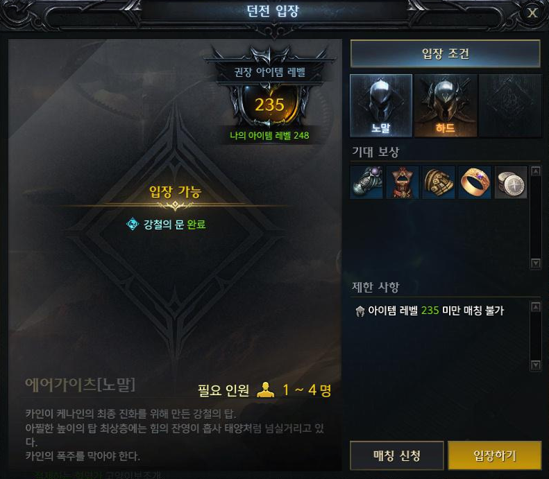 이제 아르데타인 마지막 던전인 에어가이츠에 입장을 합니다.