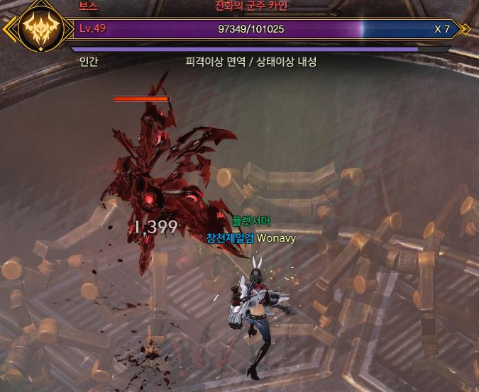 보스가 하나가 아닌 둘이라 한 번에 잡기가 좀 껄끄러웠습니다. 날아다녀서 속도고 빠르고요.
