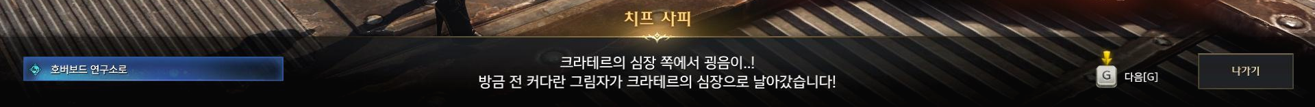 카인을 만나고 난 후 갑자기 크라테르의 심장 쪽에서 굉음이 들렸습니다.