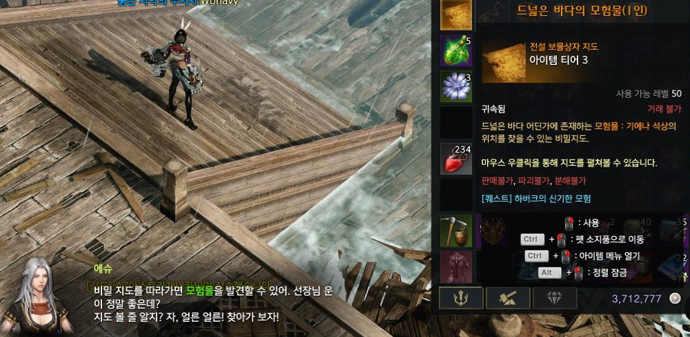 그리고 퀘스트 도중에 난파선에 가라는 퀘스트가 있어서 가게 되었는데 이렇게 보물 상자를 얻었습니다.