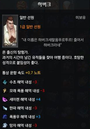 그리고 또 새로운 선원인 '하버크'를 영입하게 되었습니다.