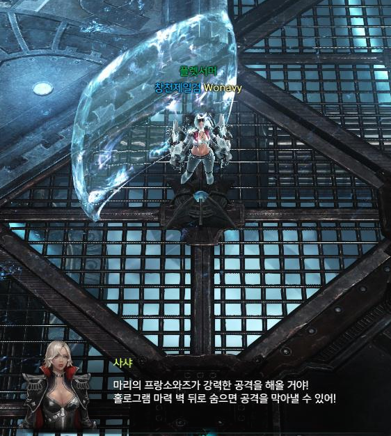 강력한 공격을 해오는데 홀로그램 마력 벽 뒤로 숨으면 막을 수 있다고 합니다.