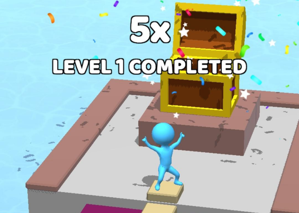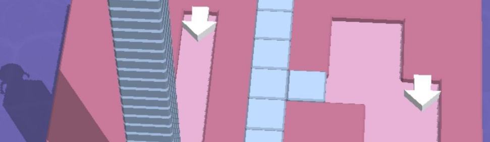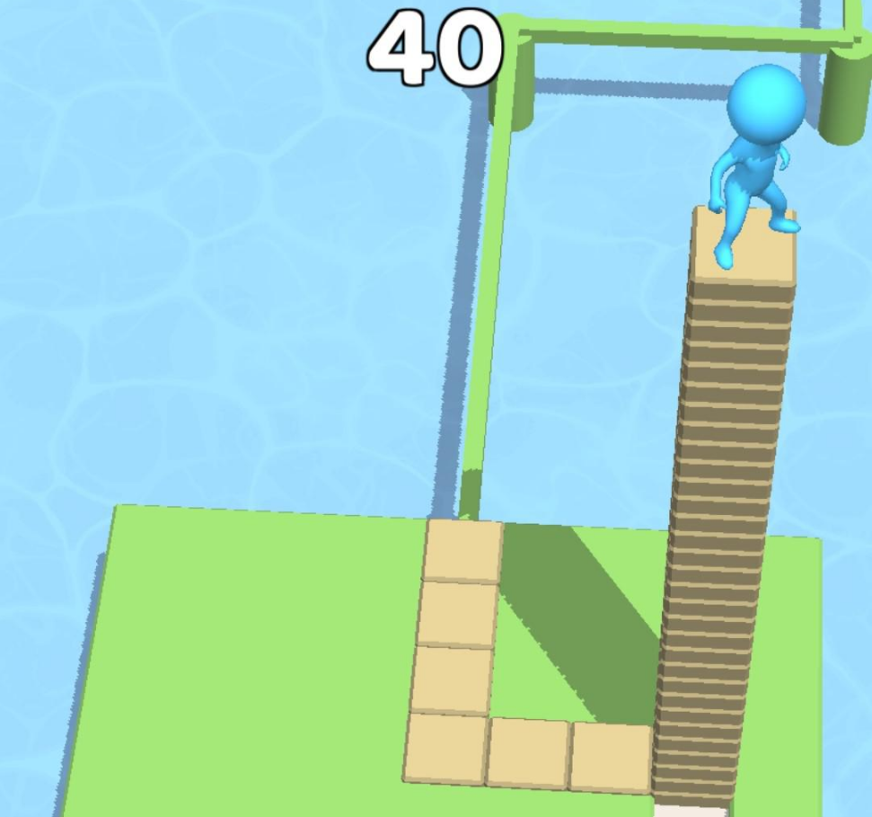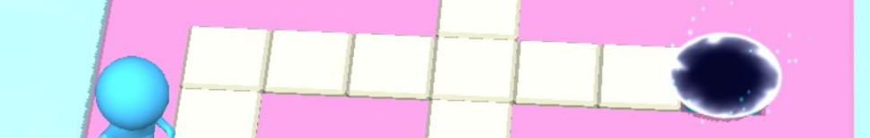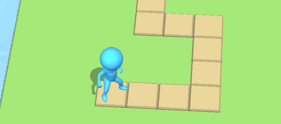 시작을 한 상태에서 해당 방향으로 슬라이드를 하면 캐릭터가 움직이고 타일을 쌓게 됩니다.