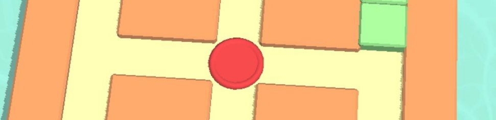 빨간 점에 가게되면 해당 점 위치에 일시 정지가 됩니다. 빨간 점에 닿으면 4방향을 다시 정해서 갈 수 있습니다.