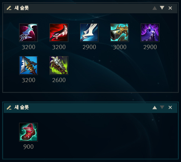 이후로 여신의 눈물을 샀기 때문에 마나무네를 필수로 올려주고, 나머지 아이템은 방어구 관통 쪽으로 올려줍니다.