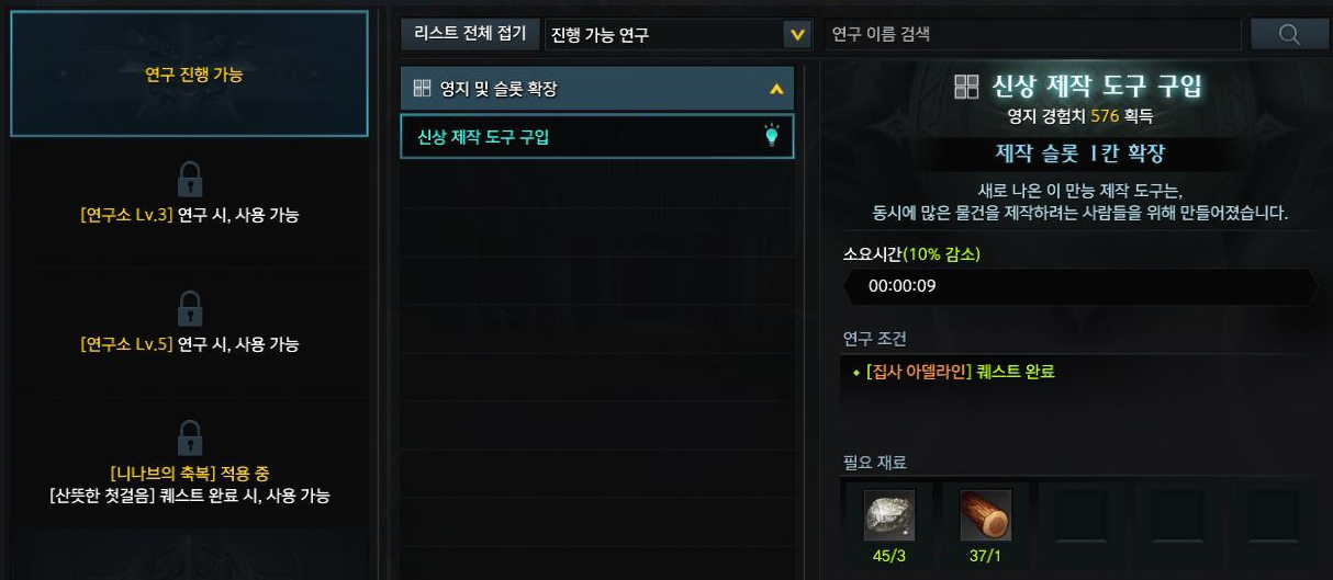 그리고 이것 저것 만들 수 있는데 필요 재료에 돌, 나무 같은 재료들이 많이 필요로 하더라고요.