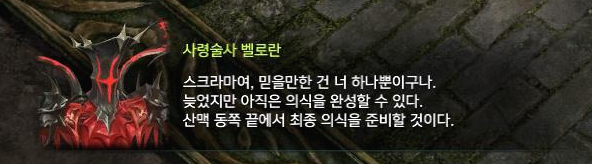 퀘스트를 하는 도중에 부하 사령술사가 말하는 걸 들을 수 있는데 최종 의식 장소를 친절하게 가르쳐주네요.