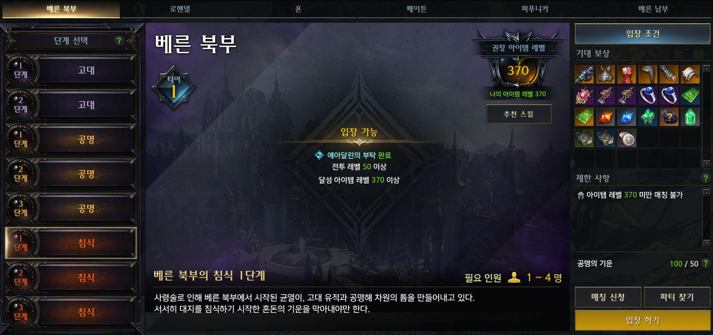 베른 북부 가장 하위 단계의 카오스 던전을 클리어하면 아이템 레벨 302 장비를 주고,