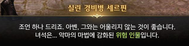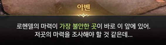 그래서 아벤이라는 NPC와 만나게 되었는데, 어쩌다보니 불안한 곳의 마력을 같이 조사하게 되었습니다.