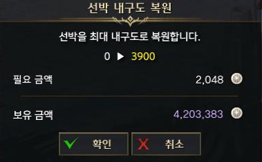 다행히 선박 수리 자체는 엄청 비싸지 않았고, 항해 자체도 가능하더라고요.