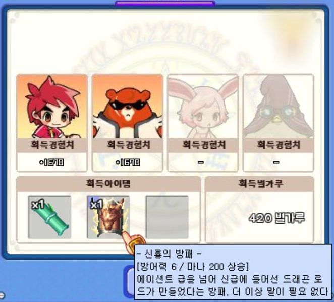 그리고 카오스 드래곤을 잡으면 '신룡의 방패'를 주는데 이 방패 성능이 생각보다 좋은 편이라