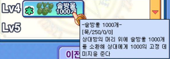그리고 이쯤에서 '솔방울 1000개'라는 스킬을 배울 수가 있는데 고정 데미지 1000을 주는 좋은 스킬입니다.
