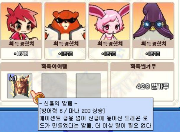 뺑뺑이 돌아서 전부 신룡의 방패를 장착을 했습니다.