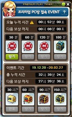 30분/60분 접속시 100 마일리지, 120분 접속시 500 마일리지를 줍니다.