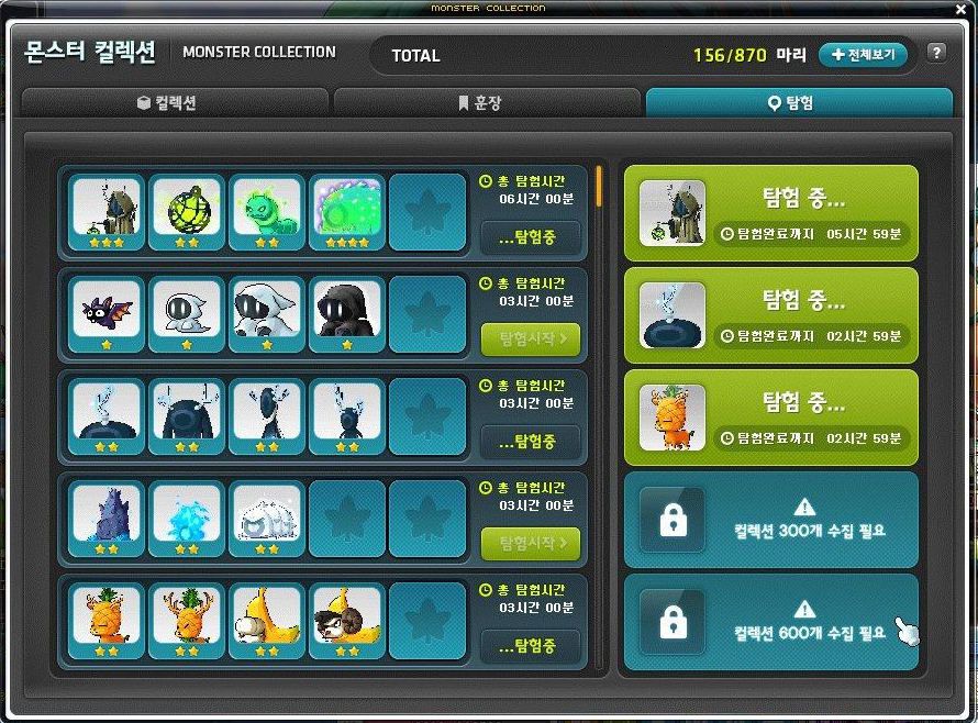 몬스터 컬렉션 보상으로 각종 아이템과 마일리지를 줍니다.