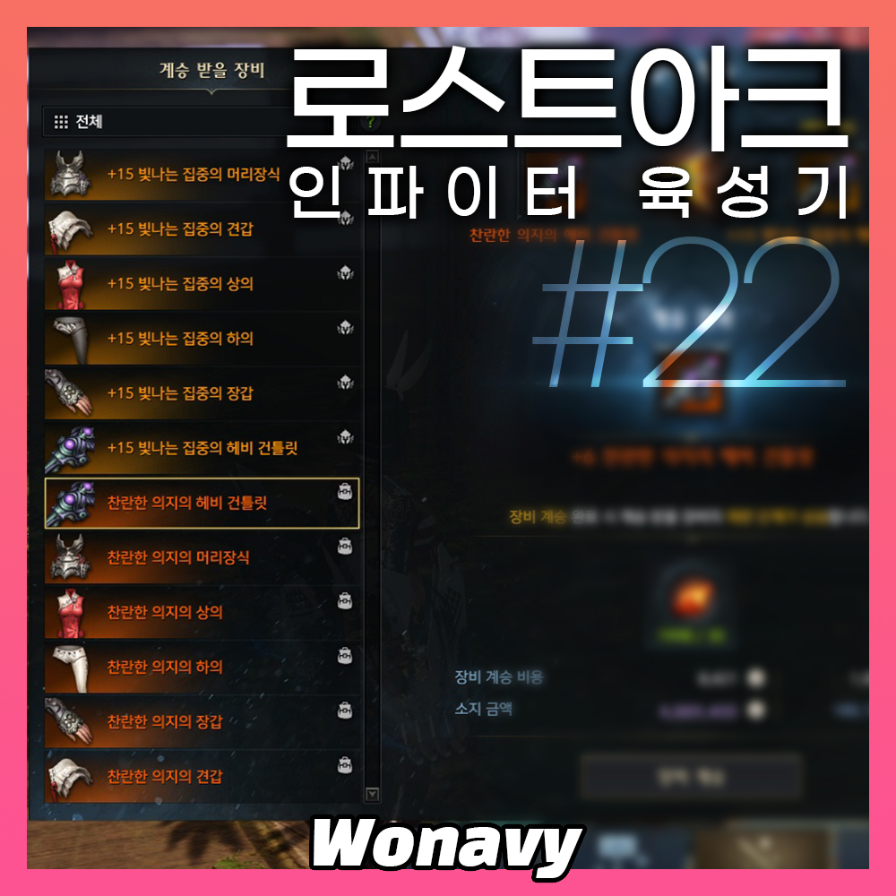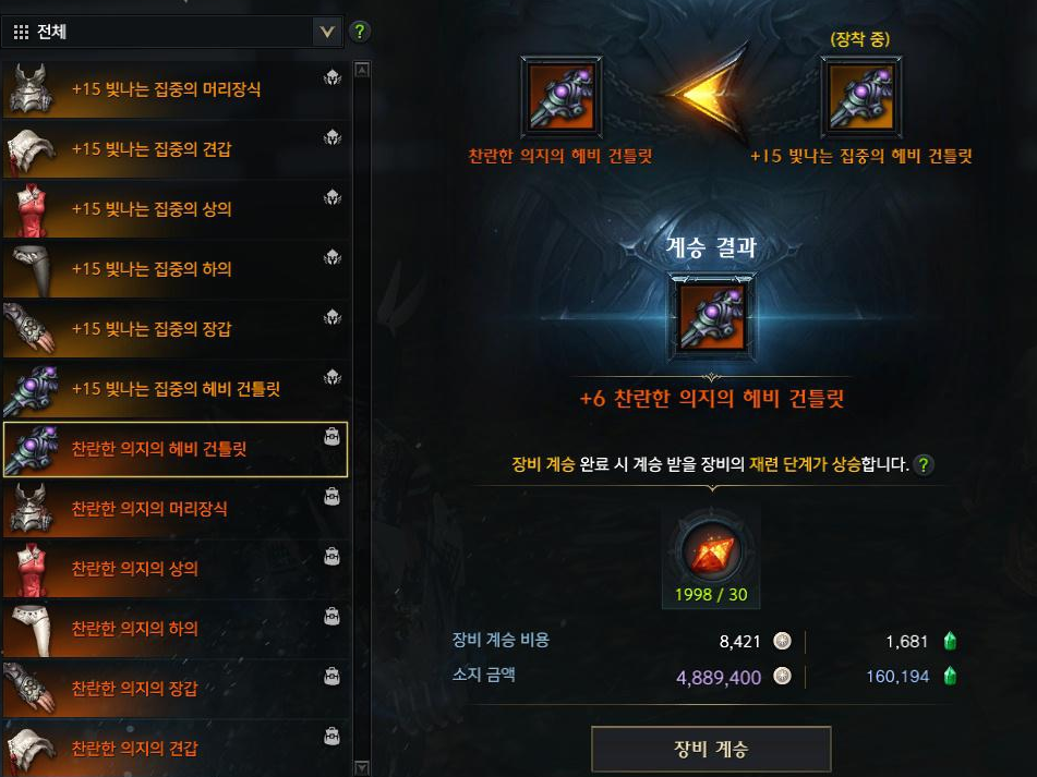 385 레벨 장비를 모두 모아서 기존에 입고 있었던 장비를 모두 계승을 해주시면 됩니다.
