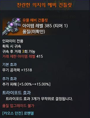 로헨델 카오스 던전에서는 아이템 레벨 385 장비를 얻을 수 있습니다.