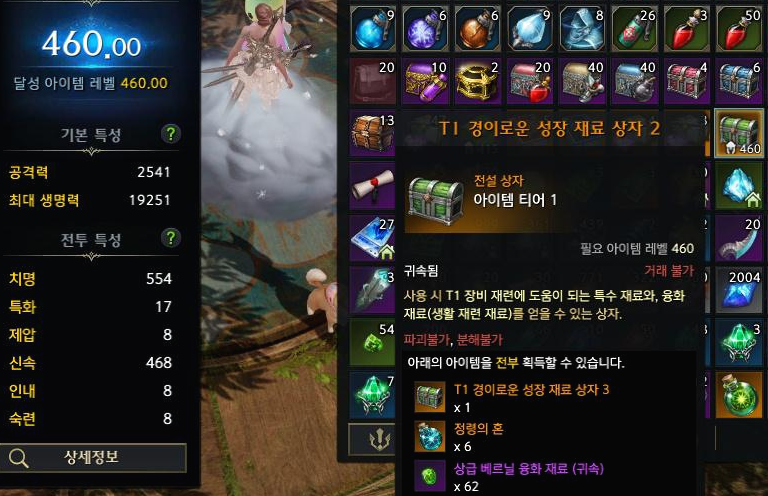 아이템 레벨이 오를 때마다 이렇게 성장 재료 상자를 받게 되니 꼭 열어주도록 합시다.