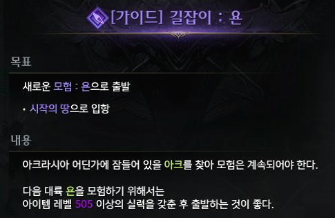 아이템 레벨 505를 달성하고 욘으로 가면 퀘스트를 시작할 수 있습니다.