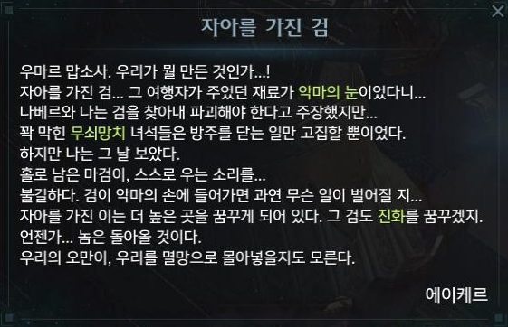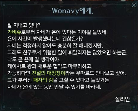 그리고 중간에 실리안의 편지를 받았는데, 부러진 패자의 검을 수리하기 위해서 여기로 온다고 하더라고요.