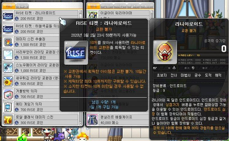 이번에는 라니아로이드를 200코인씩 10일동안 모았는데