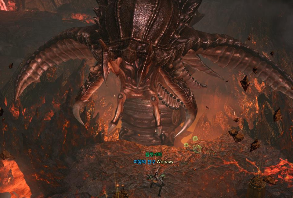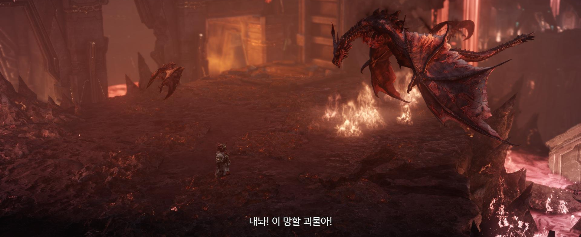 계속 퀘스트를 진행하던 도중에 바훈투르 얘가 자신의 무기를 용암에 빠뜨리고 맙니다.