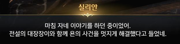 그리고 실리안을 오랜만에 다시 만나게 됐습니다. 패자의 검을 바훈투르가 고쳐주겠다고 하더라고요.