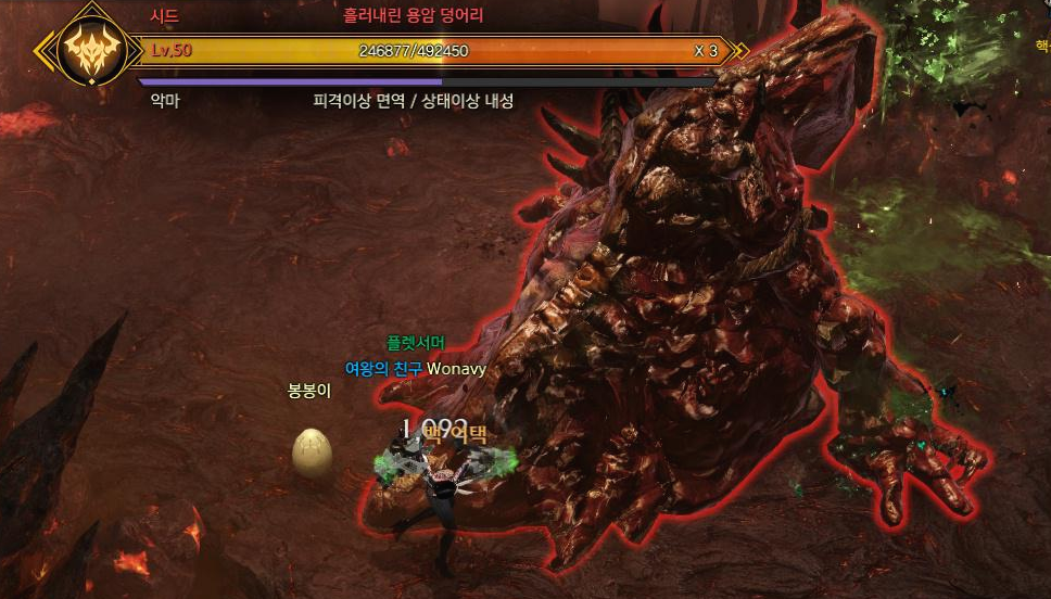 다행히 잃어버리지 않고 용암 몬스터를 잡아서 다시 되찾게 해줬습니다.