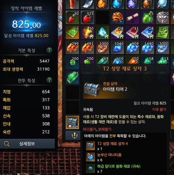 그리고 아이템 레벨이 오를 때마다 성장 재료 상자를 계속 주기 때문에 계속 확인 해야합니다.