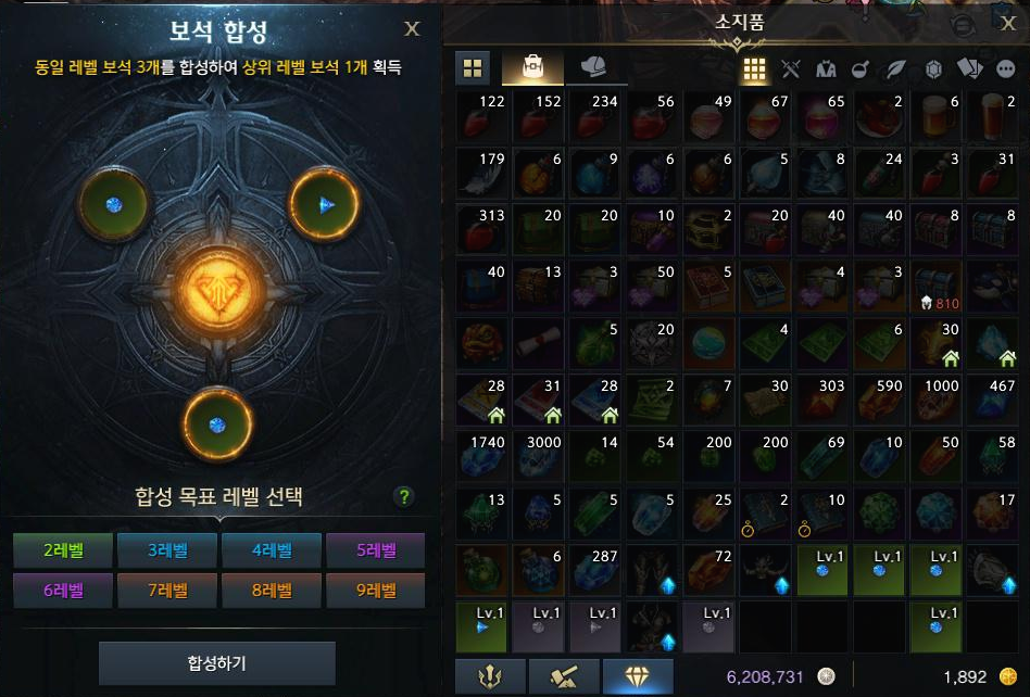 같은 레벨의 보석 3개를 사용해서 상위 단계 보석 1개를 얻을 수 있습니다.