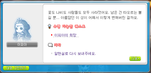 이렇게 이피아에게 찾아가서 '이피아의 희망' 퀘스트를 통해 장신구를 주면