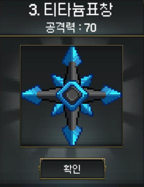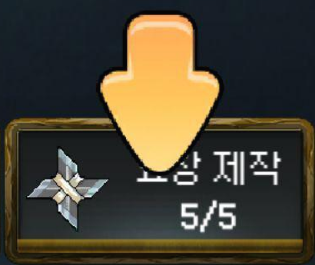 게임을 켜면 우측 하단에 표창을 제작하라는 화살표가 나오게 되고,