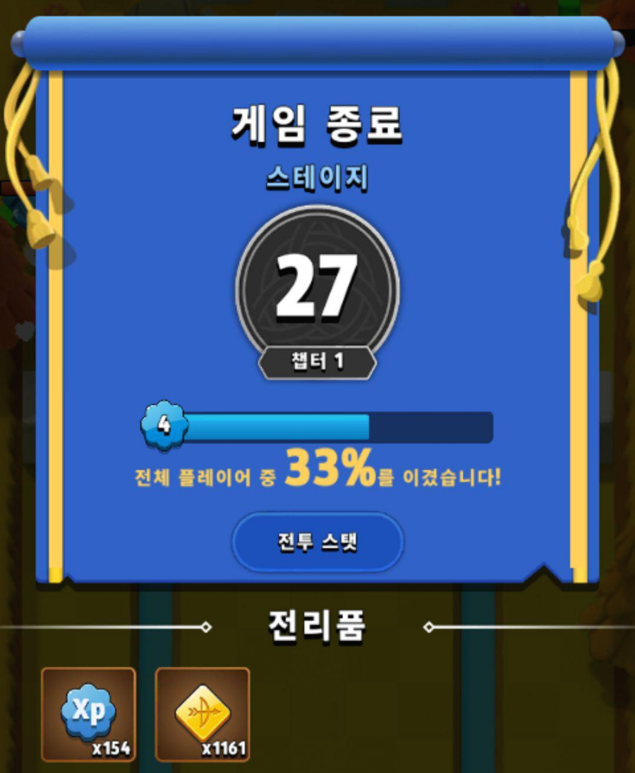 해당 챕터의 모든 스테이지를 클리어하거나 도중에 쓰러지게 되면 그동안 모은 보상을 받게 됩니다.